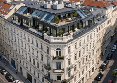 Das Projekt in der Kenyongasse steht exemplarisch für den sensiblen Umgang mit bestehender Bausubstanz und deren Weiterentwicklung zu hochwertigem Wohnraum. Die Verbindung aus Bestand und zeitgenössischer Architektur schafft ein nachhaltiges und zugleich exklusives Wohnumfeld.