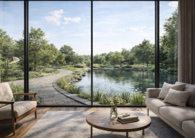 Jedes Haus verfügt über rund 135 m² Wohnfläche und überzeugt durch funktionale Grundrisse, helle Räume sowie eine fließende Verbindung zwischen Innen- und Außenbereich. Großzügige Verglasungen und private Freiflächen wie Gärten und Terrassen unterstreichen den Anspruch an modernes Wohnen im suburbanen Kontext.