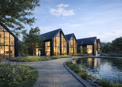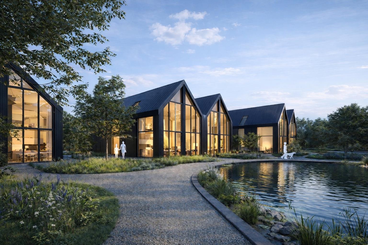 Mit dem Projekt OGD entsteht in Niederösterreich ein modernes Wohnensemble aus 16 Doppelhäusern, das zeitgemäße Architektur mit hoher Lebensqualität im Grünen verbindet. Der Entwurf verfolgt eine klare, reduzierte Formensprache und schafft durch eine durchdachte Anordnung der Baukörper eine harmonische Gesamtstruktur mit ausreichend Privatsphäre für jede Einheit.